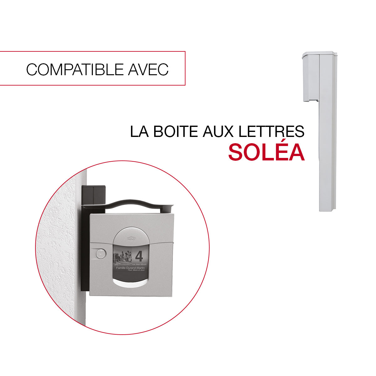 Pour parfaire l’installation de votre boite aux lettres Soléa, complétez-la avec une console murale à visser. Conçue pour une parfaite harmonie avec votre boite Soléa, elle sublime sa pose ! La console murale est livrée avec visserie, permettant de fixer l’accessoire sur la boite. Son concept évolutif permet de d’être complété en option avec un toit décoratif dépose journal. La console est garantie 15 ans anti-corrosion.