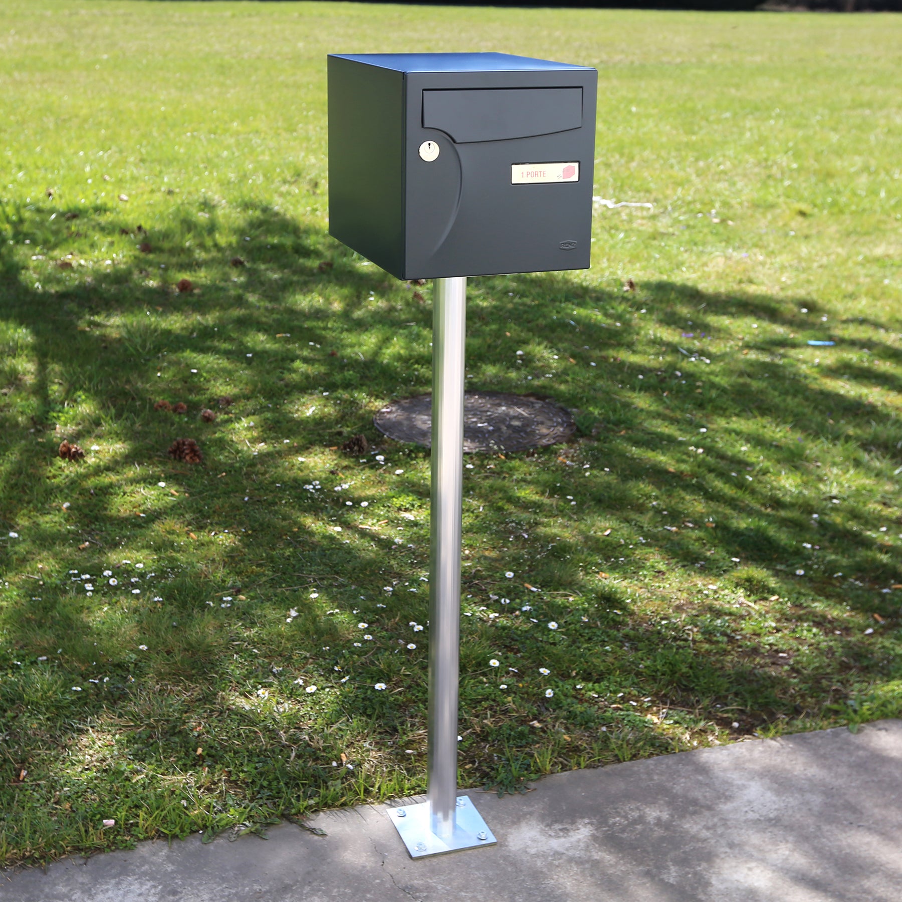 - Après avoir soigneusement choisi l’endroit où installer votre boite aux lettres, vous pourrez fixer le pied au sol. Attention : votre boite aux lettres doit être visible et accessible pour le facteur ou les livreurs. Il doit être possible d’ouvrir la porte sans rencontrer d’obstacle. Pensez-y avant de la fixer !