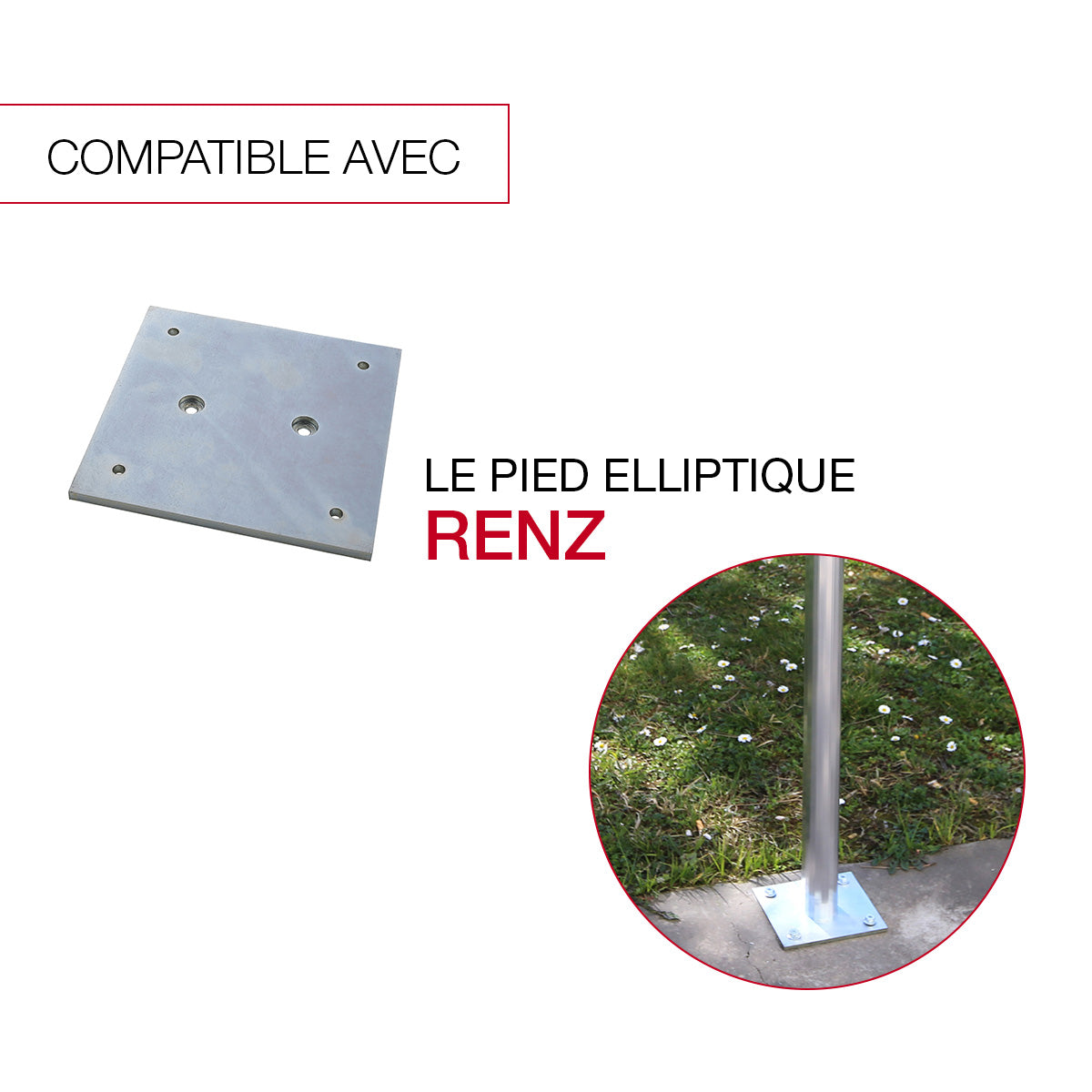 La platine de boite aux lettres Renz est compatible avec le pied elliptique Renz. Ce dernier mesure 70 x 1150 x 50 mm. Il permet une pose de votre boite aux lettres Renz à la bonne hauteur.