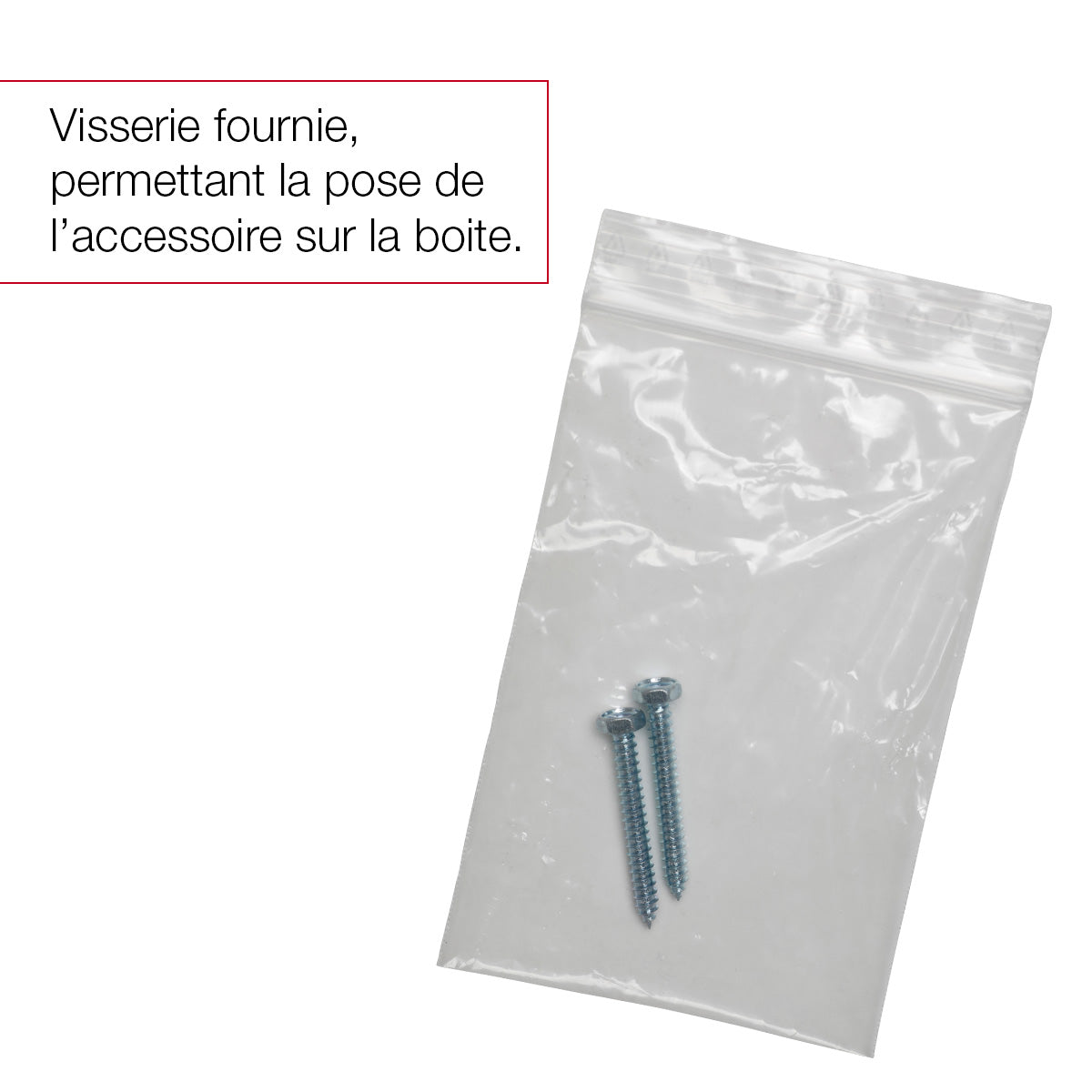 - Une fois cette partie du pied retirée, munissez-vous de la platine de boite aux lettres et des vis. Placez les 2 vis fournies sur la platine de fixation, puis les vissez-les.