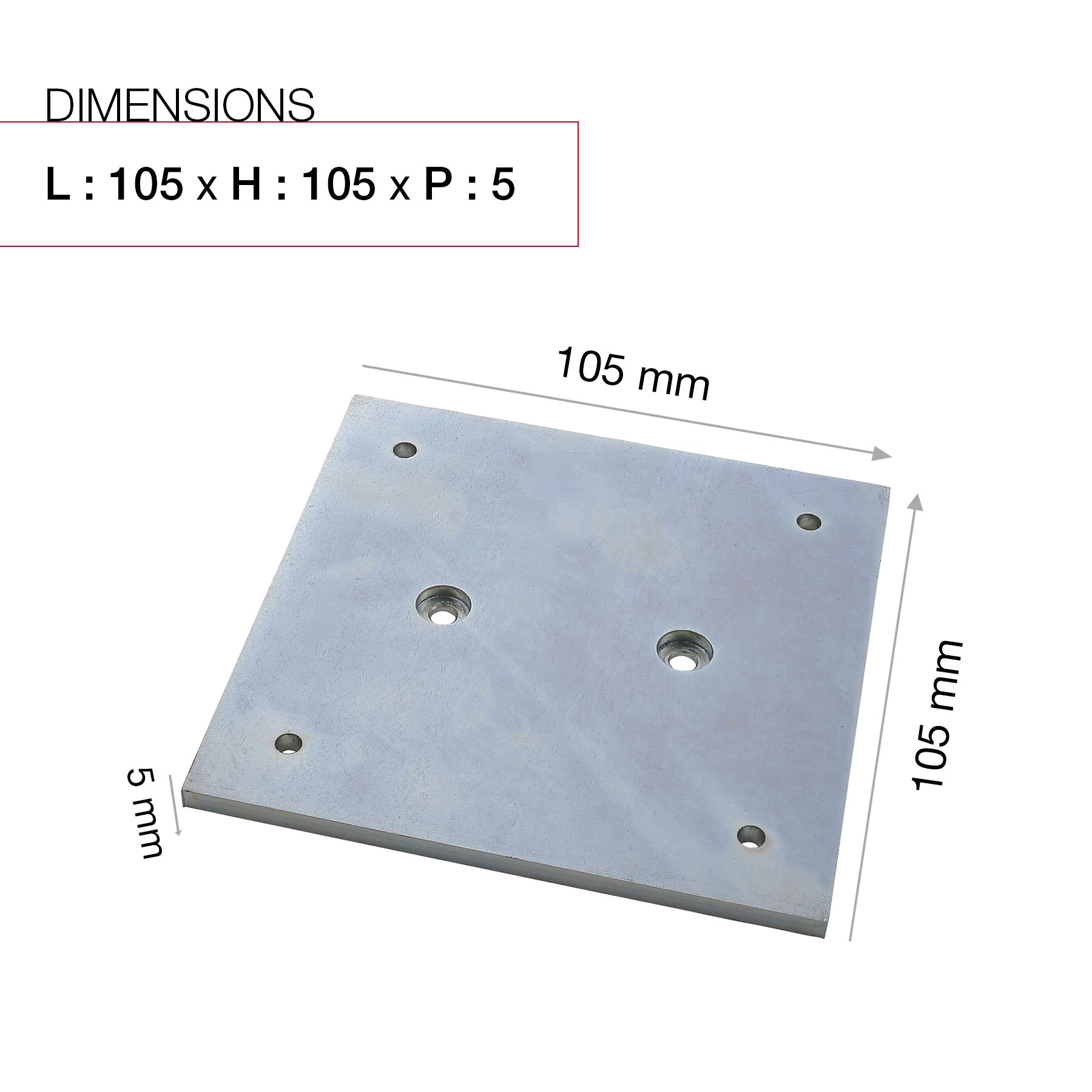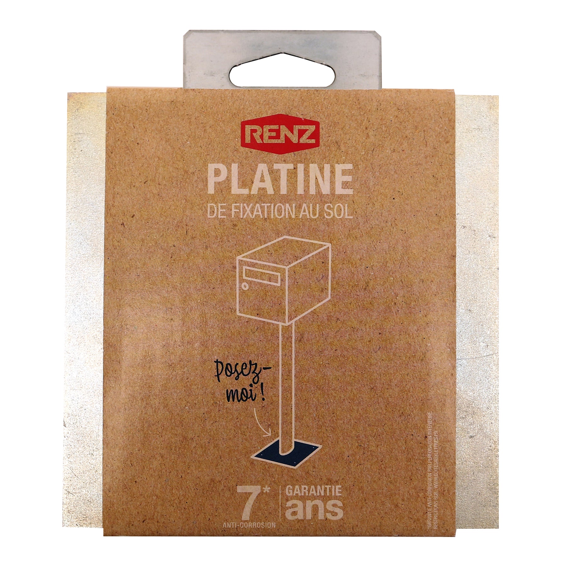 La platine de fixation Renz a un format carré. Elle mesure 150 x 150 mm et a une épaisseur de 5 mm. Elle est en acier, ce qui garantit sa durabilité et sa résistance aux intempéries. Elle bénéficie d’une garantie anti-corrosion de 7 ans