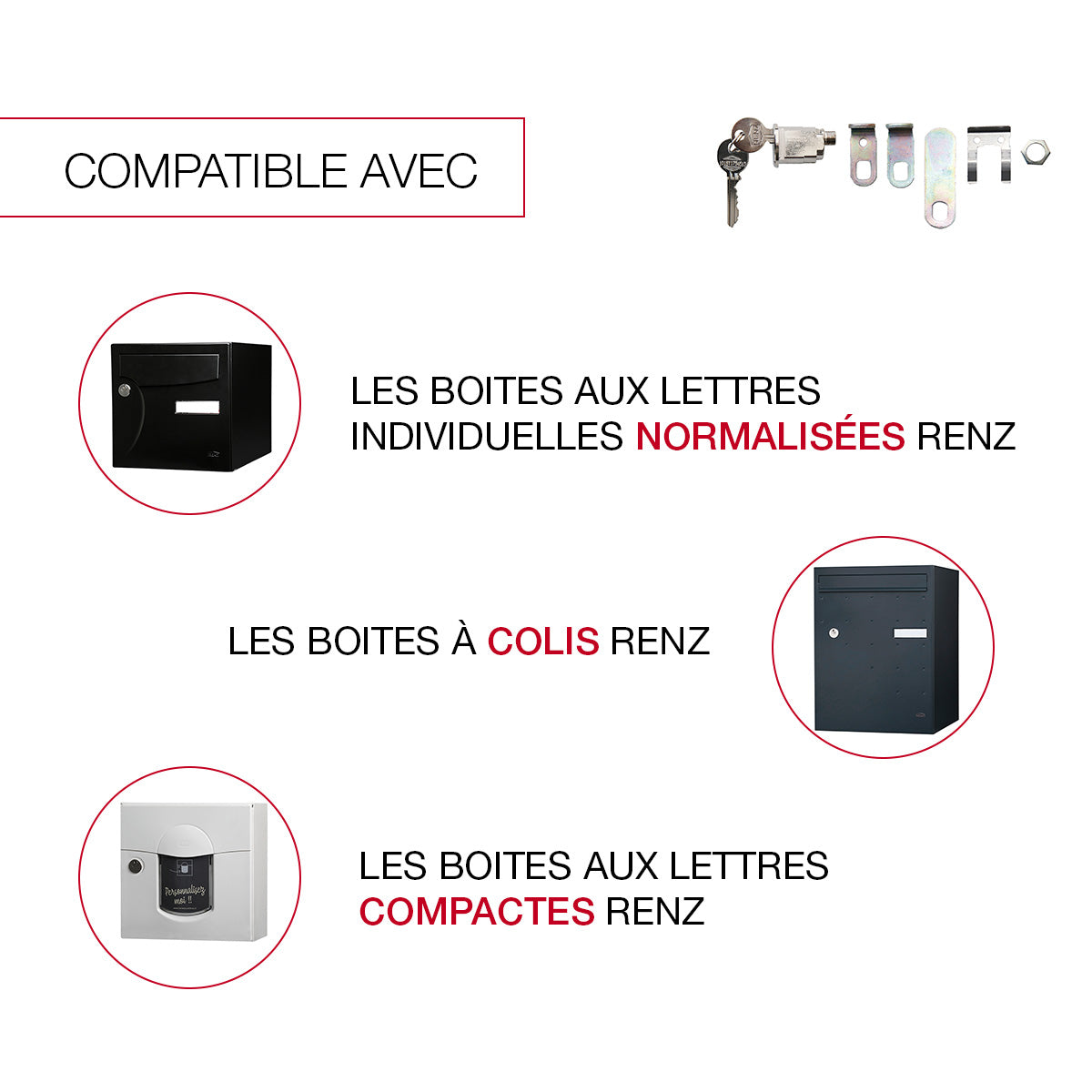 - La serrure de boite aux lettres PTT normalisée permet l’ouverture de votre boite aux lettres ou boite à colis pour la livraison. Cette serrure est aux normes de La Poste et compacte. Elle s'adapte à toutes les boites individuelles RENZ.