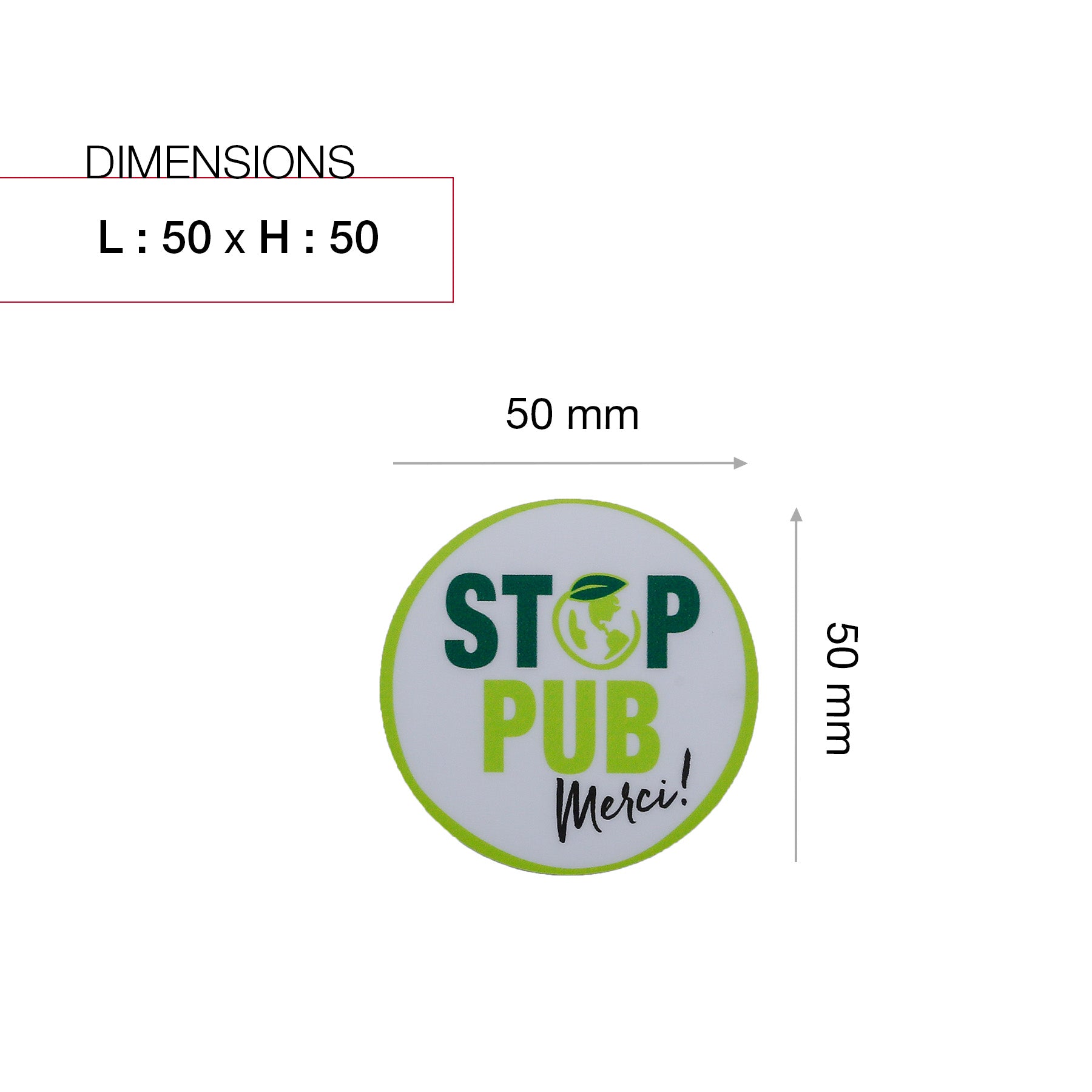 Vous ne voulez plus recevoir de publicités dans votre boite aux lettres ? Faites-le savoir avec notre sticker « Stop pub ». Facile à coller à l’avant de votre boite, il fait connaître votre choix concernant la publicité, tout en contribuant à réduire le gaspillage de prospectus.